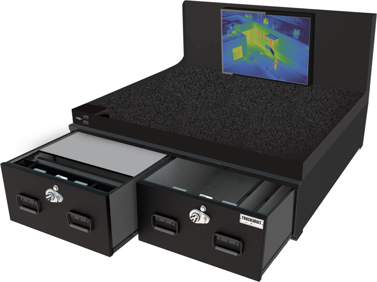 The perfect design for anyone looking for high-security storage system for their SUV that maximizes storage space in two separate drawers, mounted to the floor. Specifically sized to allow for scoped weapons upright in the drawer. Equipped with our Strike-Guard and Simplex Combination lock for industry-leading security.