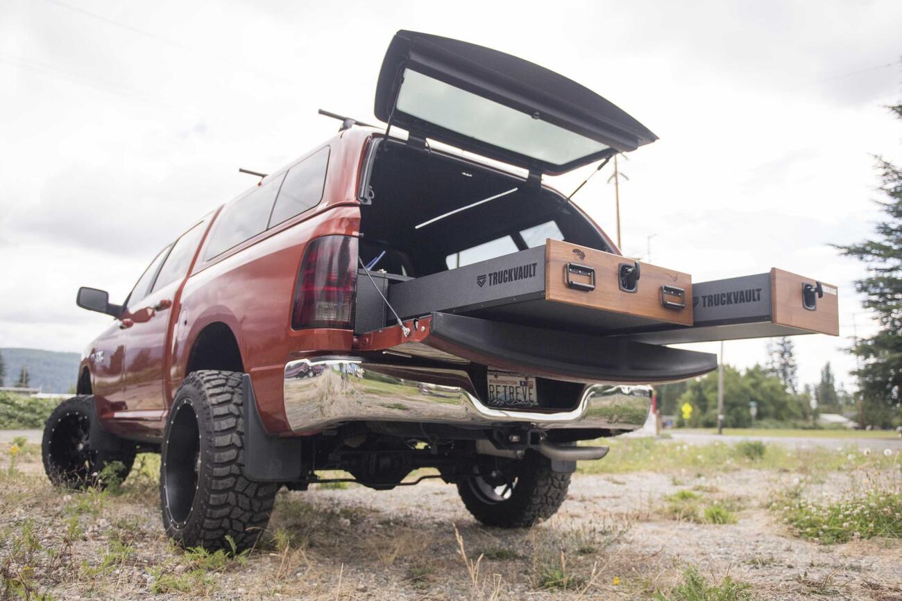 Image Year 2014 Products All-Weather Line Standard Offset Vehicle Dodge Ram Activity Off Road Outdoor Sports Overlanding Hunting Fishing photography Videography Tags Rear Facing Custom Mahogany Drawer Face Spring Handles folding T-handle compression lock