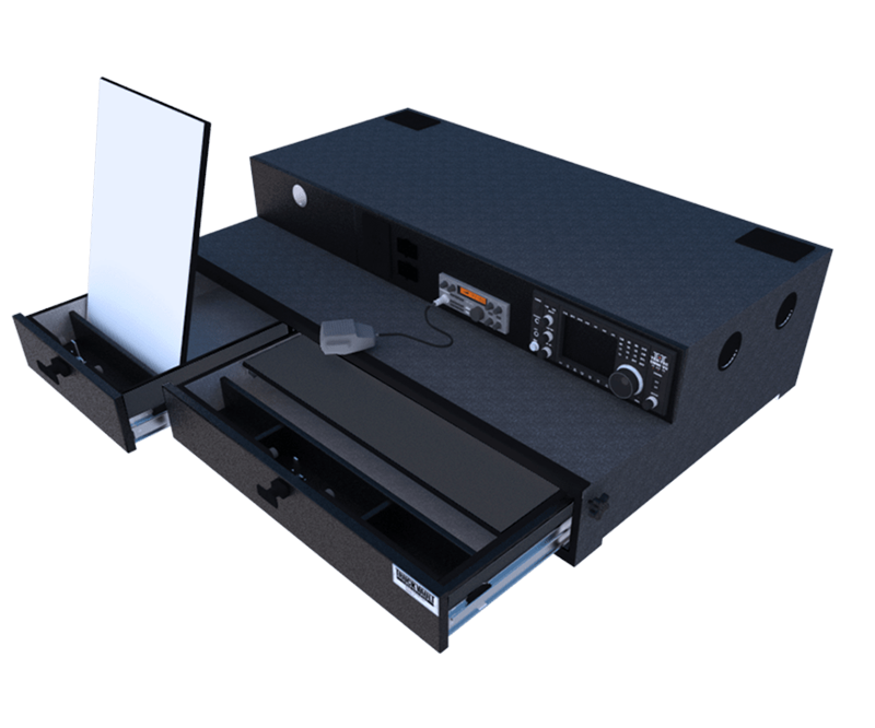 Our EM7 provides a low-profile command for rapid response efforts. This system comes dual-glide bottom drawers with a dry erase map board in one of the drawers. It also featuring a top mounted radio panel which includes 5x 120V outlets, 4x USB-A ports, 1x USB-C port, 1x HDMI port, 1x inverter switch and 4x vents.